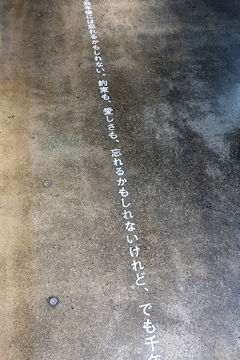 コンクリート打ちっぱなしの床にも、愛の言葉が縦一直線に記されている。